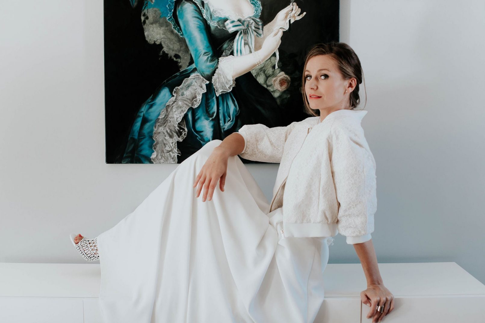 - Bombers en crêpe lourd de soie et dentelle de Calais
